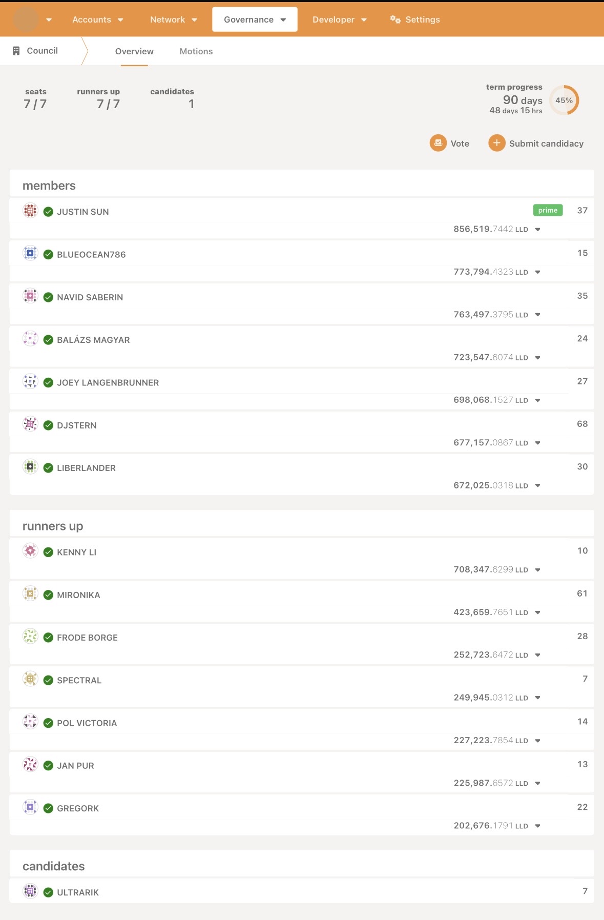 After I voted for the first time last week in the referendum to approve the SORA bridge I realized you could also see who else voted and how many merits each person holds.