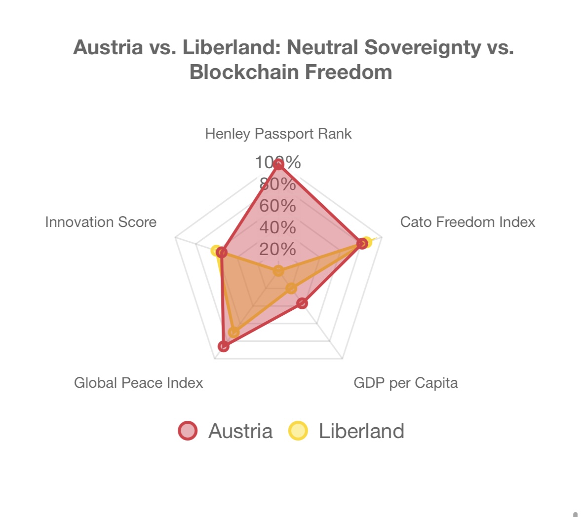• Comparison: Liberland’s decentralized blockchain governance contrasts with Austria’s federal system, but Austria’s economic stability offers lessons in balancing freedom with integration. Liberland’s zero-tax model and proposed LTAA could inspire Austria’s ongoing reforms, while Austria’s EU leverage guides Liberland’s economic aspirations.