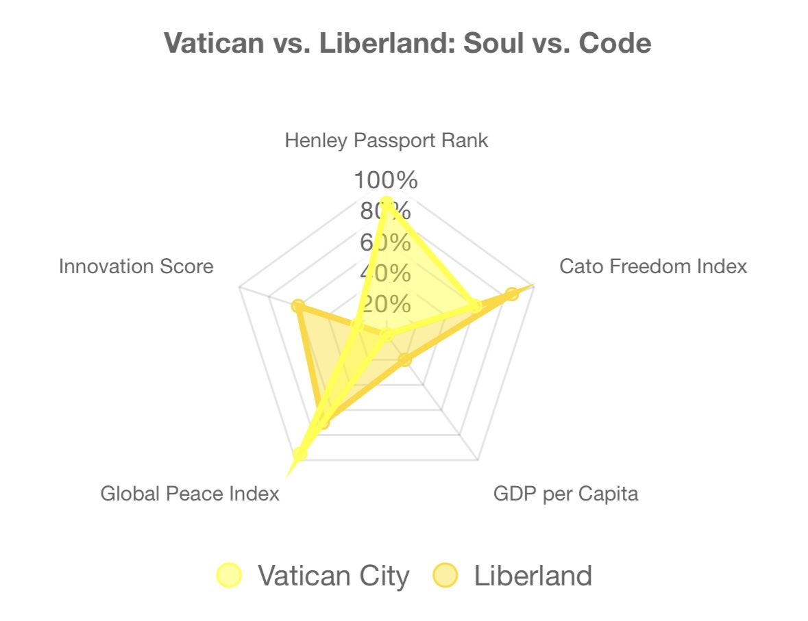 • Comparison: The Vatican’s moral diplomacy is Liberland’s fastest route to influence: swap rosaries for smart contracts.
